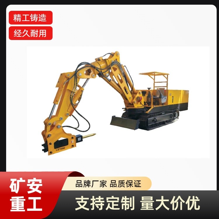 煤矿用巷道修复机是一种多功能巷道修护设备,主要用于煤巷、半煤岩巷、全岩巷修复作业,可满足挖掘、装项目 单位 WPZ-37/600L WPZ-45/800L载、破碎、切割、侧掏、支护、吊装等维护作业需求,也可以对大块的煤矸进行破碎,以便装运。巷道修复机工作装置部分根据实际修复需要,可将挖斗、铣挖头、破碎锤等专用属具通过液压快换装置实现A:最大挖掘半径 mm ≥5830 ≥5870 快速互换。利用挖斗挖装煤岩,转载到刮板运输机、皮带运输机、矿车或其他装载设备上,同时工作臂能左右旋转B:最大挖掘深度 mm ≥2660 ≥2730±180°,对巷道侧帮、顶板等进行修护作业;液压破碎锤能破碎巷道内较硬岩石、混凝土;铣挖切割头能开挖水沟C:最大挖掘高度 mm ≥5610 ≥5660 或巷道周边铣槽。D:最大收挖斗高度 mm ≥4870 ≥4820整机结构紧凑、外形尺寸小、节约能源、噪声低、效率高,实现巷道修复机械化作业,可大大提高巷修作业速度。